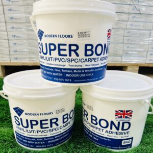 MODERN FLOORS® stocks high quality affordable adhesives ideal for the installation of Artificial Carpet Grass(AstroTurf), Vinyl / LVT / PVC / SPC / Carpet Tiles and Wall Paper that bonds with concrete, tiles, plywood, steel, marble, terrazzo and existing well bonded vinyl tiles.